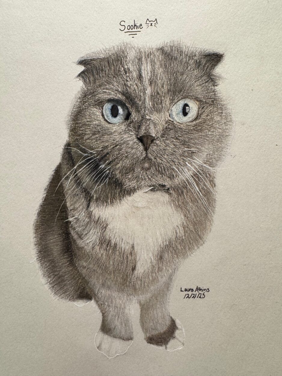 Meet Laura Atkins, a talented 13-year-old artist with a remarkable gift for capturing the essence of pets through her colored pencil portraits.